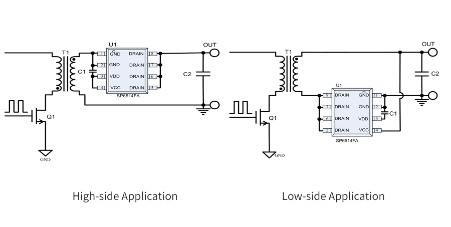 SP6514FA是一顆高性能的開(kāi)關(guān)電源次級(jí)側(cè)同步整流控制電路。在低壓大電流開(kāi)關(guān)電源應(yīng)用中,輕松滿足6級(jí)能效,是理想的超低導(dǎo)通壓降整流器件的解決方案。芯片可支持高達(dá)150KHz的開(kāi)關(guān)頻率應(yīng)用,并且支持CCM / QR / DCM等開(kāi)關(guān)電源工作模式應(yīng)用,其極低導(dǎo)通壓降產(chǎn)生的損耗遠(yuǎn)小于肖特基二極管的導(dǎo)通損耗,極大提高了系統(tǒng)的轉(zhuǎn)換效率,大幅降低了整流器件的溫度。